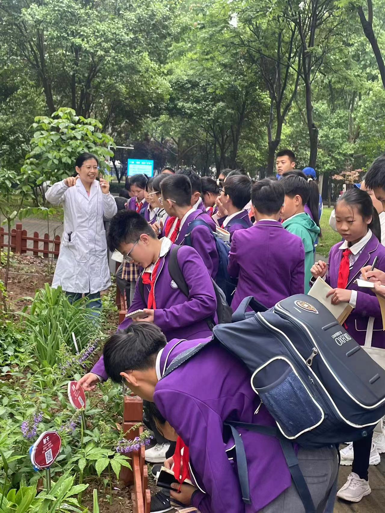 第一站参观的是中药百草园种植基地。中药系熊洋老师为我们讲解基地中药种植情况。在熊洋老师的的带领下,孩子们认识了多种药用植物,了解了它的药理药性。通过精彩的互动互答环节,使孩子们对中草药的兴趣更浓了。