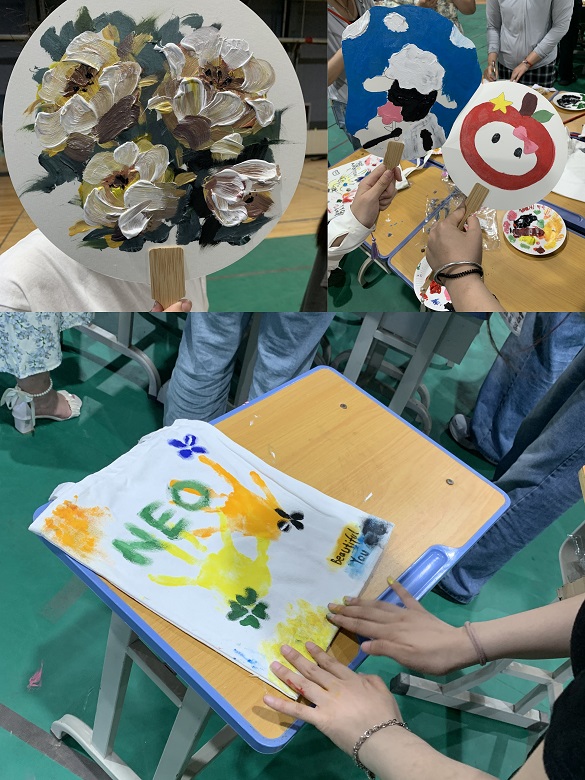 为了增强凝聚力,丰富同学们的课余活动,同时激发学生的创造力和手工能力,“DIY”活动使同学们在动手实践中体验到制作的乐趣,享受亲手制作成品的成就感,以及与同学间的互动交流。本活动提供白色帆布包和白色纸扇用颜料画笔让参与者自行创作,绘制个性图案。