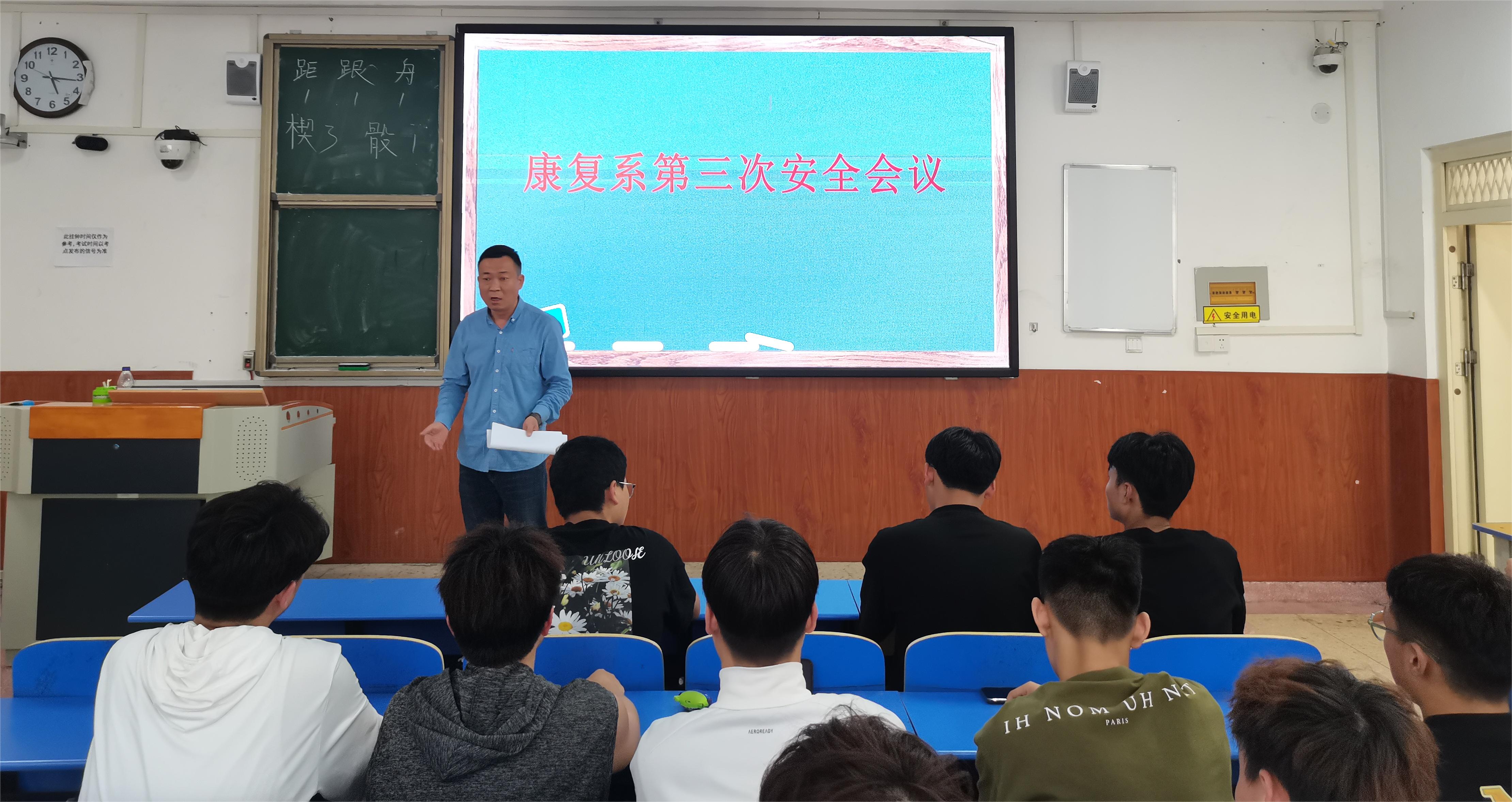 2023年5月12日下午,康复系在阶14开展了第三次安全会议。参加人员有:李得荣副主任、张俊老师、张艺冰老师、杨浩东老师以及各班班委和学生会全体成员。