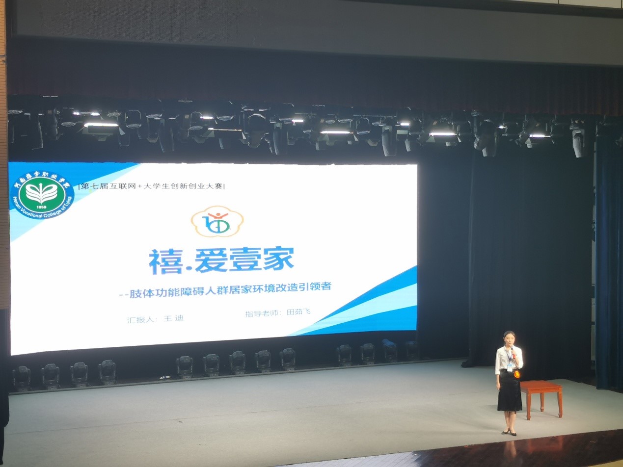 7月13日至15日,2021年河南省“互联网+”大学生创新创业大赛职教赛道决赛暨第七届中国国际“互联网+”大学生创新创业大赛河南赛区选拔赛在河南职业技术学院成功举办。经过前期近三个月的项目征集、遴选和重点培育,我校共推荐了9个项目参加省赛评选,其中由我系田茹飞老师指导、由19级王迪同学参加路演的《禧.爱壹家》项目成功入围职教赛道总决赛。经过路演、答辩等环节,该项目受到评委一致好评,并荣获省赛一等奖。此次获奖是我系首次获得“互联网+”大学生创新创业大赛省赛一等奖,实现了历史性突破!