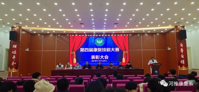 此次技能大赛采用两轮赛制,第一阶段为笔试,主要考察学生对于专业基础课和专业课相关知识的掌握程度。第二阶段为技能竞赛单元,主要考察学生运用知识和团队协作能力。此阶段要求学生三人一组分别负责病案问诊、康复评定、康复治疗、临床案例模拟4个部分,参赛选手沉着冷静、操作规范、技巧娴熟、团结协作,展现出了扎实的理论基础、高超的实践技能水平。考场上,康复治疗技术专业学生独特的精神风貌和职业素养,得到评委的一致好评。 经过一个多月紧张激烈的准备和比赛,大赛最终评出了团体奖一等奖1个团队、二等奖2个团队、三等奖3个团队;个人奖一等奖6名、二等奖12名、三等奖18名、优秀奖24名。 12月24日下午,康复系在图书馆一楼报告厅举行了表彰大会和颁奖仪式。仪式由李得荣老师主持,康复系副主任王书宽、刘国宝出席了表彰大会,并为获奖学生颁发了荣誉证书。通过此次比赛提升了学生的学习积极性、临床实践技能和心理素质,为系部选拔了人才,也为我院参加2020年河南省和国家康复技能大赛奠定了基础。康复系第四届技能大赛颁奖典礼圆满落幕。