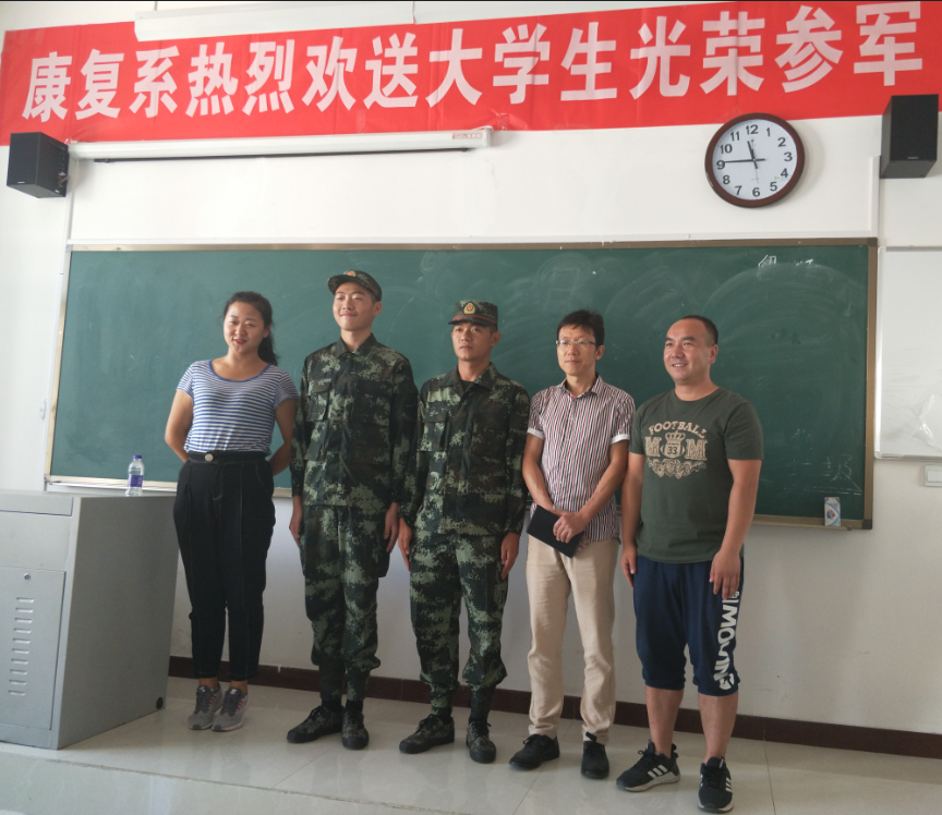 9月7日下午,康复系2018年大学生入伍欢送会在综合楼302教室举行。系副主任王书宽、刘国宝,学工班主任张俊老师和全体入伍学生及在校生代表参加会议。学工办韩刘洋老师主持欢送会。