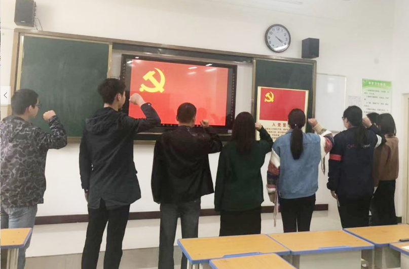 会上,首先由经李得荣、张艺冰等两名预备党员分别宣读《转正申请书》,在全体党员讨论、投票表决通过后,转为正式党员。随后为新发展入党的六名预备党员举行入党宣誓仪式。仪式在庄严肃穆的《国际歌》中正式开始,全体党员佩戴党徽,手拿党章,面对鲜红的党旗,高举右手,在在刘国宝同志的领誓下庄重宣誓,和新入党同志一起重温入党誓词,回忆令人激动的入党时刻,再次体验激情的青春,老党员与新党员庄严向党承诺,表达了为党的事业奋斗终身的决心和愿望。