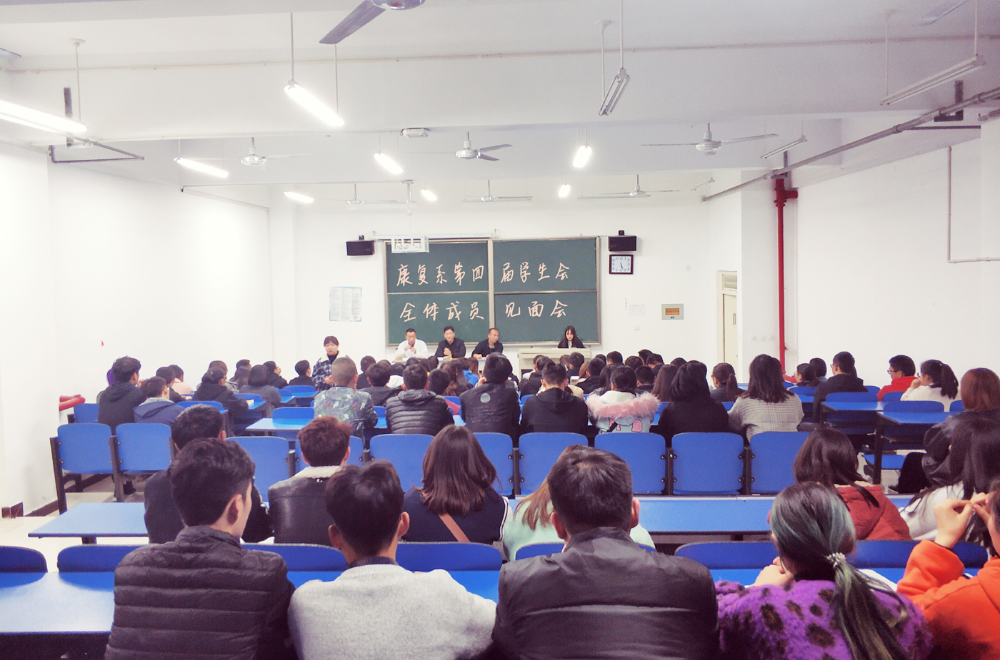 2018年11月29日下午16:30河南推拿职业学院康复系学生会隆重召开了学生会新生见面大会。出席本次会议的有康复系党支部书记系副主任王书宽老师、系副主任刘国宝老师、康复系教研室主任李得荣老师,学工办主任张俊老师和部分辅导员老师级学生会主席孙彦琪同学、副主席常梦捷同学以及各部部长和新一届全体学生会成员。