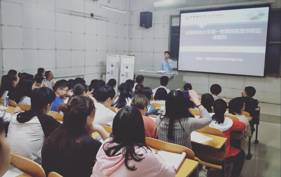 为了更好地做好16级学生的实习工作、增进实习基地与学生之间的相互了解。2018年5月4日下午,康复系在实验楼第六阶梯教室召开实习单位实习生见面会,会议邀请河南科技大学第一附属医院等5家实习单位医政科和康复科相关负责人参会。